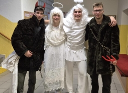 Třídou, která získala největší počet bodů byla 1.OA+1.ZS, za nejlepší masku byli vyhlášeni “padlí andělé” Jarda Pašek a David Pospíšil a nejlépe namaskovanou třídou se stala 1.N.